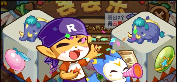 点击我要丢的按钮,开始抽奖!如果在丢骰子停止后出现两个云翼紫龙或者两个流星猛犸象,我们就能获得它哦!就比如好人品!