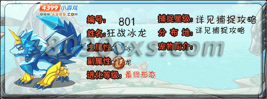 编号801,主属性冰,副属性龙,这已经是它的最终形态,已经不能再进化了。