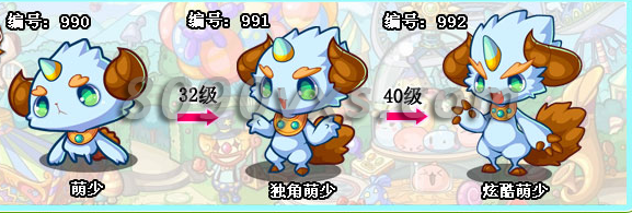 独角萌少是32级开始进化,炫酷萌少是40级开始进化。