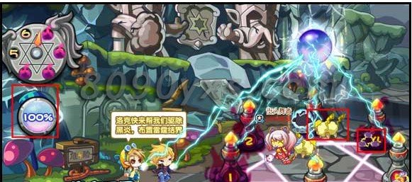 百分百充能后,点击被黑炎污染的魔法图腾进入战斗