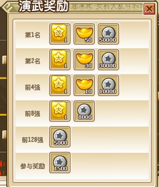 3.比赛将在前一天报名的玩家中自动进行,比赛中使用报名时保存的将领数据和阵型,报名后在演武战未开始前,玩家仍然可以在演武场界面右下角更换将领和阵型