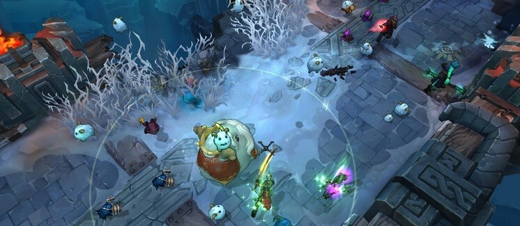 首先这个图 位于嚎哭深渊,魄罗大乱斗是一个5V5的盲选模式,你的目标是摧毁对方的水晶枢纽。不过你会得到一些魄罗的陪伴(用来向彼此投掷),准备好在传说级别的魄罗国王的帮助下一起发挥出亮眼的操作吧。