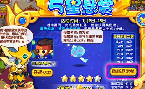 赏金券可以在活动洛克王国5星悬赏中,完成5星级悬赏单后获得,接到的悬赏单的星级,可以点击刷新悬赏单刷新任务星级,获得悬赏单后,就前往悬赏单地点完成。