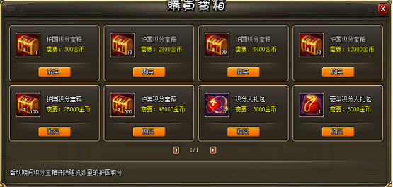 8. 活动界面也可以用金币购买积分宝箱,宝箱内含护国积分和大量的道具奖励。