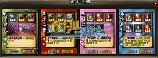 1)特定的三国名将卡可以组成卡片组合,当收集到某一组合的全部卡片后,就可以领取奖励。2)在领取奖励时该组合的所有卡片都会消耗一张。剩余的卡片可以出售换取银币。