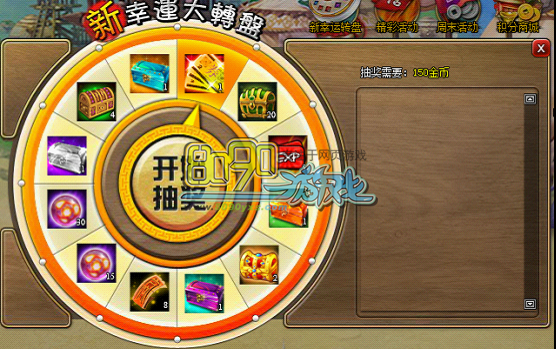 【活动内容】:活动当天玩家可点击游戏中的“新幸运转盘”活动按钮,在打开的活动界面中参与活动,72级以下玩家每次可花费90金币转动转盘,赢取相应的奖励;72级以上玩家每次可花费150金币转动转盘,赢取更高价值的奖励。