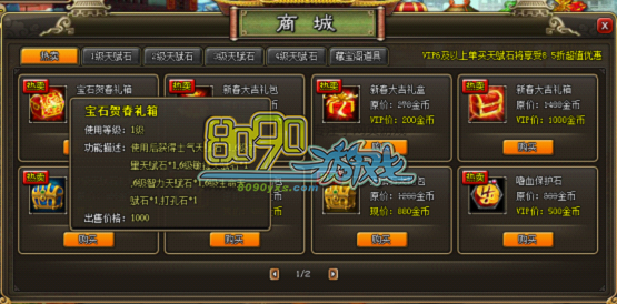 贺新春,商城宝石贺春礼箱给力上架,内含6级天赋石及打孔石,机会不容错过!