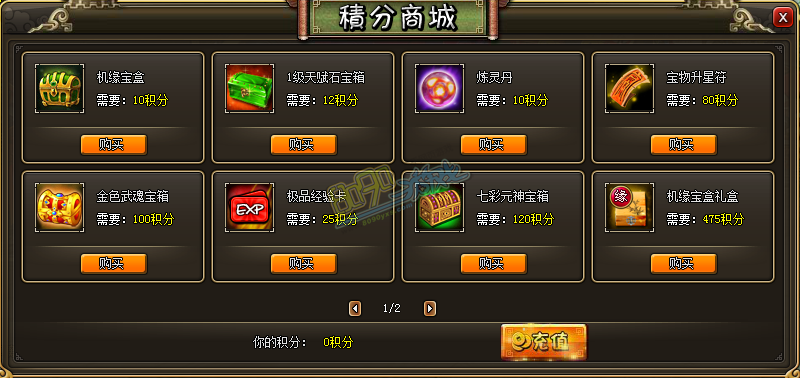 即充值500金币可以获得75积分;充值10000金币可以获得1800积分。
