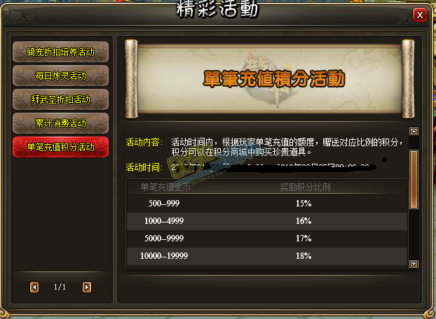 2、充值得到相应的积分比例,可以在“精彩活动”界面直接查看: