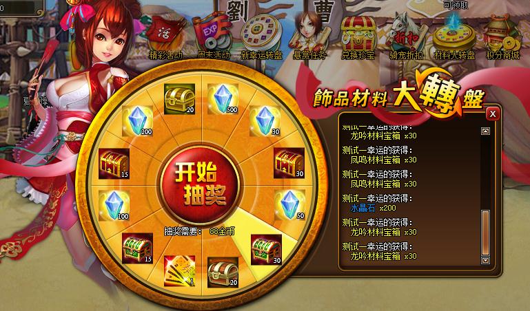 3、符合等级要求的玩家直接消耗金币抽取,每次88金币,价格不随抽奖次数递增。