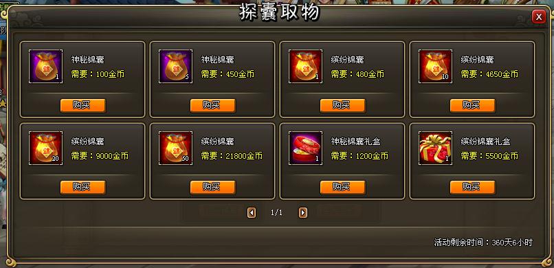 特殊说明:活动期间,可以通过购买锦囊获得大量珍贵道具。必须注意的是“神秘锦囊礼盒”和“缤纷锦囊礼盒”每天仅限购买一次。