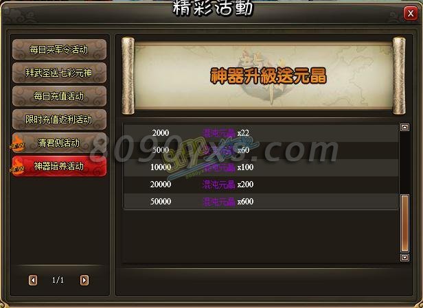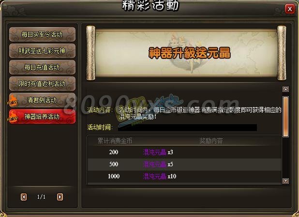 活动内容:活动时间内,每日金币锻造神器消费满指定额度即可获得相应的混沌元晶奖励!