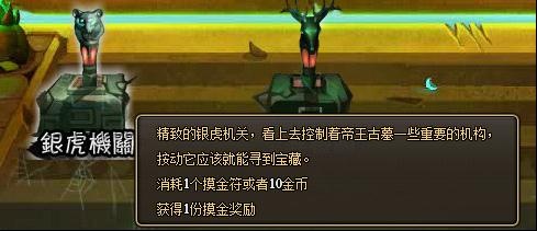 玩家可以通过银虎机关消耗一个摸金符或10个金币进行一次摸金。得到一份摸金奖励。摸金奖励是必定获得的哦。