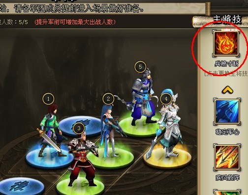 每个技能都有其特定的作用,运用得好往往能够旗开得胜,而运用不好往往费劲力气都过不了关卡。初期有四个技能最先出现,分别是:精准打击、破军之力、调虎离山、稳定军心。
