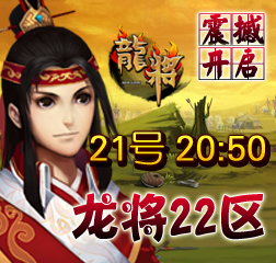 8090龙将“双线22区”将于2012年6月21日晚上20:50震撼开启。精彩即将上演,超乎想象的游戏体验正期待您的加入! 喜迎新服开启,8090《龙将》已为您准备了丰富的开服活动助你在三国乱世中驰骋沙场、建功立业!
