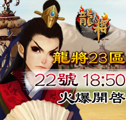8090龙将“双线23区”将于2012年6月22日晚上18:50震撼开启。精彩即将上演,超乎想象的游戏体验正期待您的加入! 喜迎新服开启,8090《龙将》已为您准备了丰富的开服活动助你在三国乱世中驰骋沙场、建功立业!