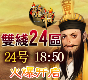 8090龙将“双线24区”将于2012年6月24日晚上18:50震撼开启。精彩即将上演,超乎想象的游戏体验正期待您的加入! 喜迎新服开启,8090《龙将》已为您准备了丰富的开服活动助你在三国乱世中驰骋沙场、建功立业!
