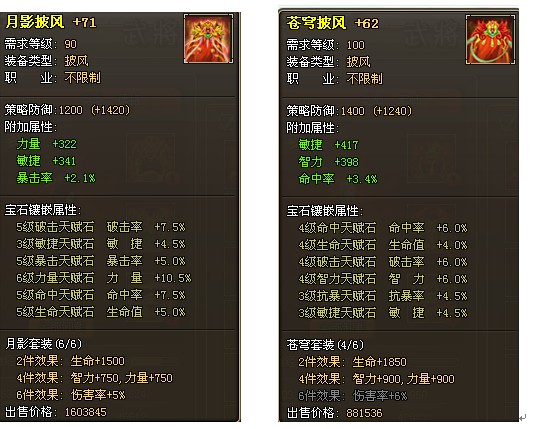 从装备的加成来讲,90的披风要比100的披风少了200的防御: