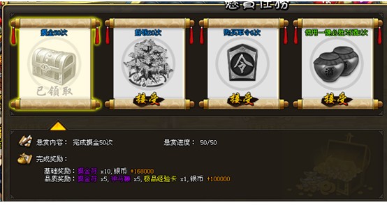 3、每种任务的难度是随机的,比如摇钱就有20次、30次、40次的区别,在选择任务的时候,玩家们切忌量力而行。