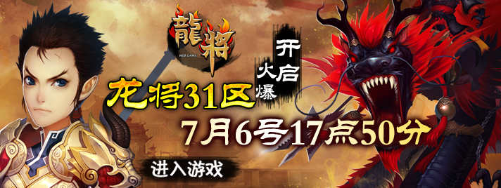 8090龙将-双线31区将于2012年7月6日17:50震撼开启。精彩即将上演,超乎想象的游戏体验正期待您的加入! 喜迎新服开启,8090龙将已为您准备了丰富的开服活动助你在三国乱世中驰骋沙场、建功立业!