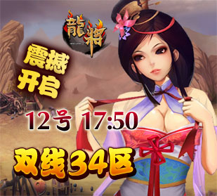 8090龙将-双线33区将于2012年7月12号17点50分震撼开启。精彩即将上演,超乎想象的游戏体验正期待您的加入! 喜迎新服开启,8090龙将已为您准备了丰富的开服活动助你在三国乱世中驰骋沙场、建功立业!