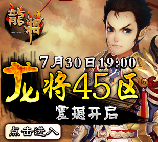 8090龙将-双线45区将于2012年7月30号19点震撼开启。精彩即将上演,超乎想象的游戏体验正期待您的加入! 喜迎新服开启,8090龙将已为您准备了丰富的开服活动助你在三国乱世中驰骋沙场、建功立业!