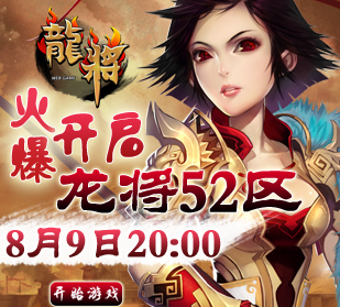 8090龙将-双线52区将于2012年8月9号20点00分震撼开启。精彩即将上演,超乎想象的游戏体验正期待您的加入! 喜迎新服开启,8090龙将已为您准备了丰富的开服活动助你在三国乱世中驰骋沙场、建功立业!