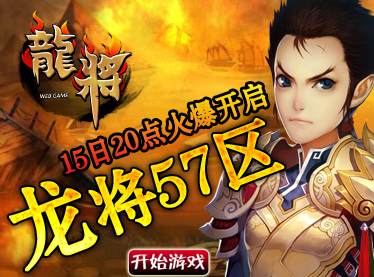 8090龙将-双线57区将于2012年8月15号20点00分震撼开启。精彩即将上演,超乎想象的游戏体验正期待您的加入! 喜迎新服开启,8090龙将已为您准备了丰富的开服活动助你在三国乱世中驰骋沙场、建功立业!