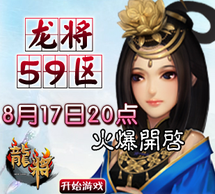 8090龙将-双线59区将于2012年8月17号20点00分震撼开启。精彩即将上演,超乎想象的游戏体验正期待您的加入! 喜迎新服开启,8090龙将已为您准备了丰富的开服活动助你在三国乱世中驰骋沙场、建功立业!