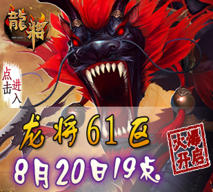 8090龙将-双线61区将于2012年8月20号19点00分震撼开启。精彩即将上演,超乎想象的游戏体验正期待您的加入! 喜迎新服开启,8090龙将已为您准备了丰富的开服活动助你在三国乱世中驰骋沙场、建功立业!