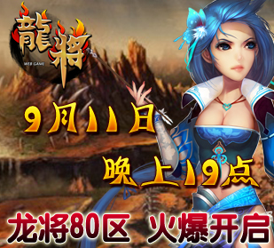 8090龙将-双线80区将于2012年9月11号19点00分震撼开启。精彩即将上演,超乎想象的游戏体验正期待您的加入! 喜迎新服开启,8090龙将已为您准备了丰富的开服活动助你在三国乱世中驰骋沙场、建功立业!