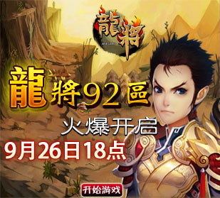 8090龙将-双线92区将于2012年9月26号18点00分震撼开启。精彩即将上演,超乎想象的游戏体验正期待您的加入! 喜迎新服开启,8090龙将已为您准备了丰富的开服活动助你在三国乱世中驰骋沙场、建功立业!