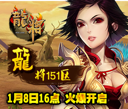 8090龙将-双线151服——1月8日16点激情开启。精彩即将上演,超乎想象的游戏体验正期待您的加入! 喜迎新服开启,8090龙将已为您准备了丰富的开服活动助你在三国乱世中驰骋沙场、建功立业!温馨提醒:8090龙将绿色环境好,新区想当村长(也就是第一)十分容易,资源任你来抢,还有意想不到的惊喜请联系在线客服。