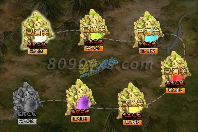 神器开启条件:东皇钟通关庚金之地;轩辕剑通关乙木之地;伏羲琴通关壬水之地。