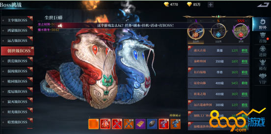 BOSS挑战,点击【BOSS】按钮打开界面,多种BOSS等你挑战。
