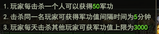 也就是说我们天天在跨服战场杀人每天可以获得3000军功,之后还可以通过护宝任务和击杀护宝车来获得。