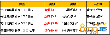 活动内容:在活动期间内玩家每日消耗仙玉达到指定数量即可领取丰厚奖励
