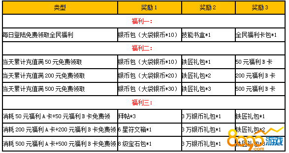 活动内容:活动期间内玩家累计充值达到指定金额即可领取丰厚奖励
