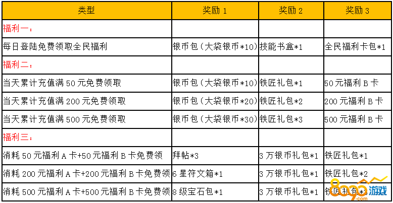 活动内容:活动期间内玩家累计充值达到指定金额即可领取丰厚奖励