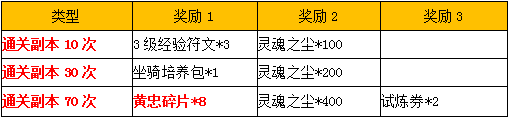 活动内容:活动期间完成副本任务达到指定次数即可领取丰厚奖励
