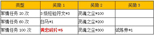 活动内容:活动期间完成军情任务达到指定次数即可领取丰厚奖励