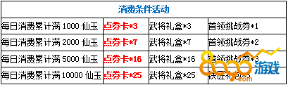 活动内容:在活动期间内玩家每日消耗仙玉达到指定数量即可领取丰厚奖励