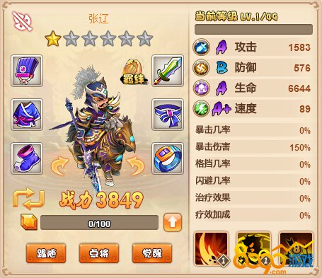 突袭:对速度低于自身目标造成额外16%的伤害,被动技能。这样的技能其实对张辽来说有很大的优势,本身他的属性优势就在于速度,基本上可以说没有武将可以突破他的速度,除非其他武将也强堆速度。所以说,这样的被动技能又着实给张辽加分。