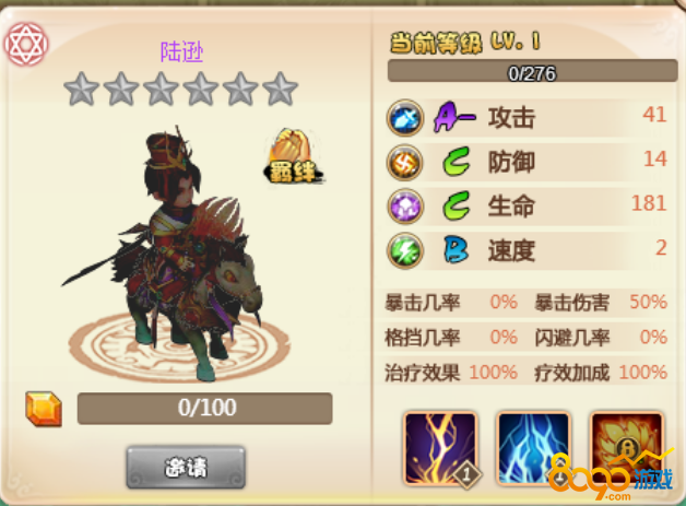 在乐蜀三国中,陆逊的属性资质并不是游戏中最出色的紫将,基本上属性评价都在B级,唯一突出的属性是在攻击上,从而让他成为非常强悍的AOE法师。要培养陆逊,需要从攻击上的属性着手,觉醒之后攻击更高,群伤自然也高,在副本中清怪速度就很快。使用陆逊,可以选择搭配若水或幽火,这两个装备都是能够造成额外伤害的最佳装备,但是不同的是若水属于生命值越低的时候攻击伤害越高,幽火则是对方生命值很高的时候装备则伤害越高。虽然装备有区别,但是对于陆逊来说,都是很好的攻击装备,给他带来极为强大的AOE攻击伤害!
