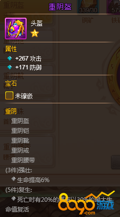 套装的话小编推荐保命套装重阴套装.3件效果生命提高6%,5件效果有20%的概率以30%的生命值复活(紫装套效果)。如果是一身橙色装备复活的概率大概在30%(估测)左右,以60%(估测)的生命值复活。这样可以保证孙尚香被群发杀死后有几率复活,给前排加盾给后排加攻击,只要孙尚香不死,我方阵容就能耐抗。