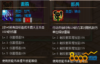 木鹿大王的怒气技能雷箭可以造成大范围的高伤害,而觉醒后的木鹿大王行动前会有一定概率对随机敌方目标释放雷箭,从而形成超高的输出。