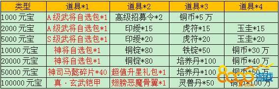 【活动内容】活动期间,玩家累积消费达到10000元宝即可领取S级武将卡*1!