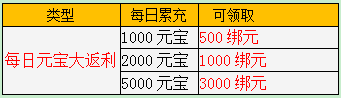 【活动内容】玩家每日累充到指定金额,即可领取满足条件额今额奖励!