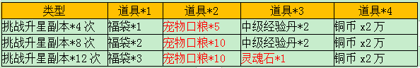 【活动内容】活动期间玩家挑战升星副本即可领取一定道具奖励!