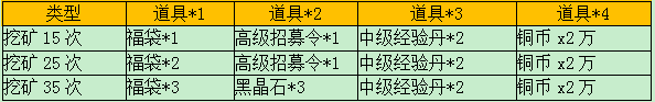 【活动内容】活动期间玩家挖矿达到指定次数即可领取一定的道具奖励